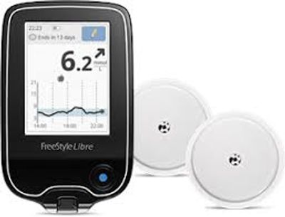The FreeStyle Libre 14 day system is a continuous glucose monitoring system consisting of a handheld reader and a sensor worn on the back of the upper arm.