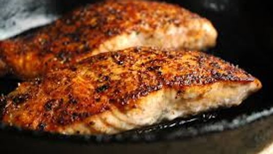 Heat a grill or cast-iron skillet to medium heat. Spray cooking spray on the cooking surface and on one side of the salmon fillets. Season the sprayed side of the fillets with salt and pepper. Lay the fillets, seasoned-side down, on the cooking surface and cook for about 3 minutes. Turn the fillets 90 degrees and cook for another 3 minutes.